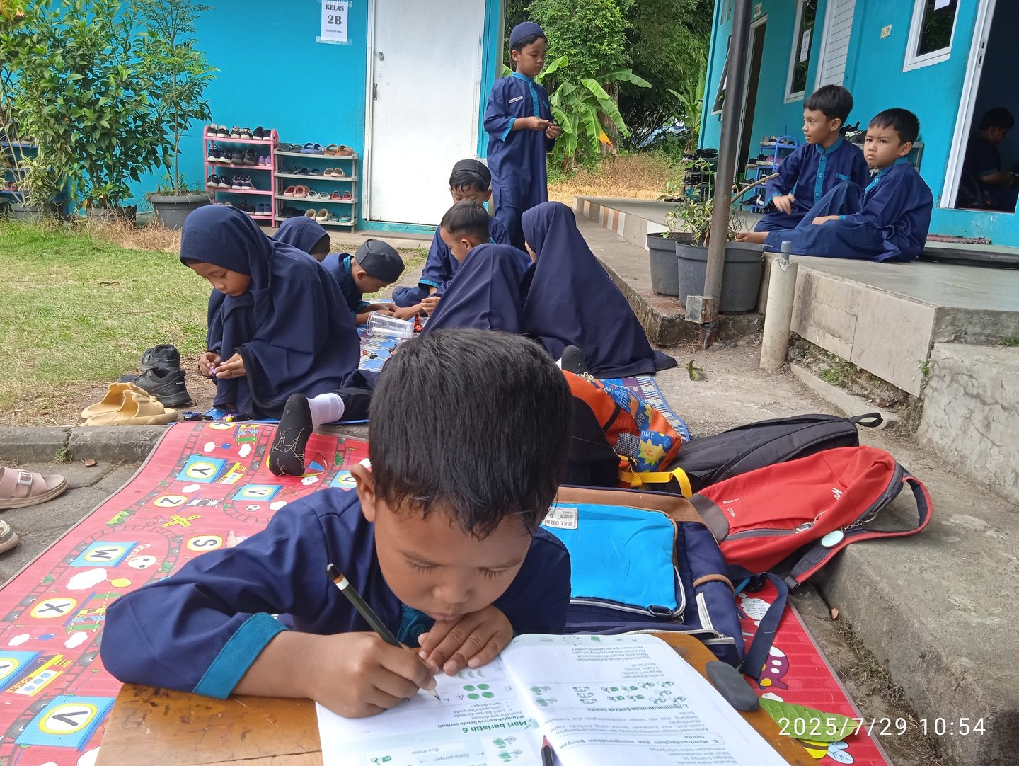 Pembelajaran luar ruangan (dihalaman sekolah) sehingga anak tidak cepat bosan dan tetap fokus dalam belajar, dan pembelajaran terasa menyenangkan.