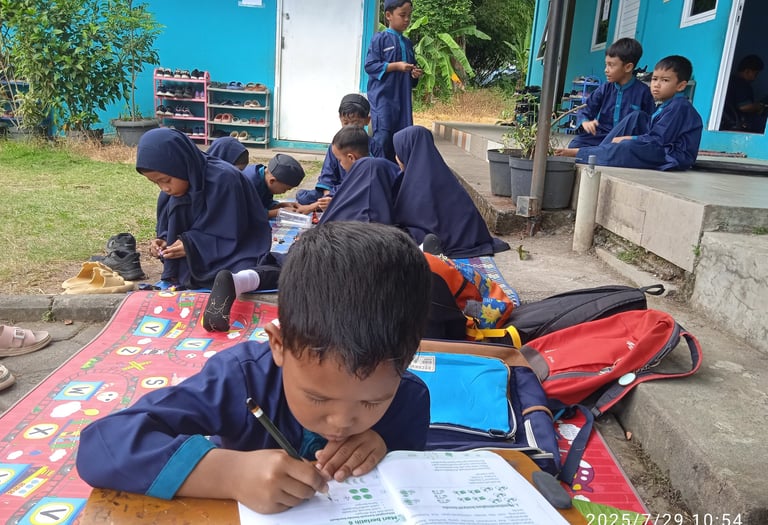 Selama pembelajaran, tutor menggunakan variasi metode (diskusi, permainan edukatif, kerja kelompok) sehingga peserta fokus pada aktivitas belajar. Ruang belajar diatur rapi, bersih, dan ramah, terkadang siswa bisa belajar di luar ruangan sehingga peserta merasa nyaman untuk berpendapat maupun bertanya. Hasilnya, kehadiran meningkat, peserta lebih aktif berdiskusi, serta suasana belajar berlangsung tertib dan menyenangkan.